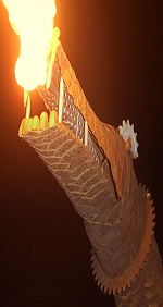 Ein Mythos, ein Wesen, neu geschaffen von Menschen aus der Jetztzeit — Feuerspeiendes wurde für Fantasiereisende zum Leben erweckt. Eine mobile oder immobile Eventfackel — ein Beispiel für die Machbarkeit an Form, Design, Material und Technik.